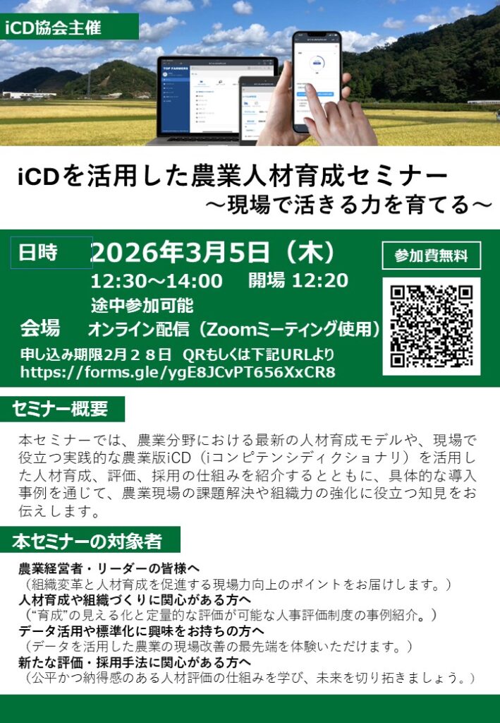 iCDを活用した農業人材育成セミナー ~現場で活きる力を育てる~
